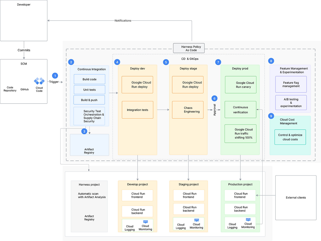 Harness는 CI/CD 전체 과정을 관리합니다.